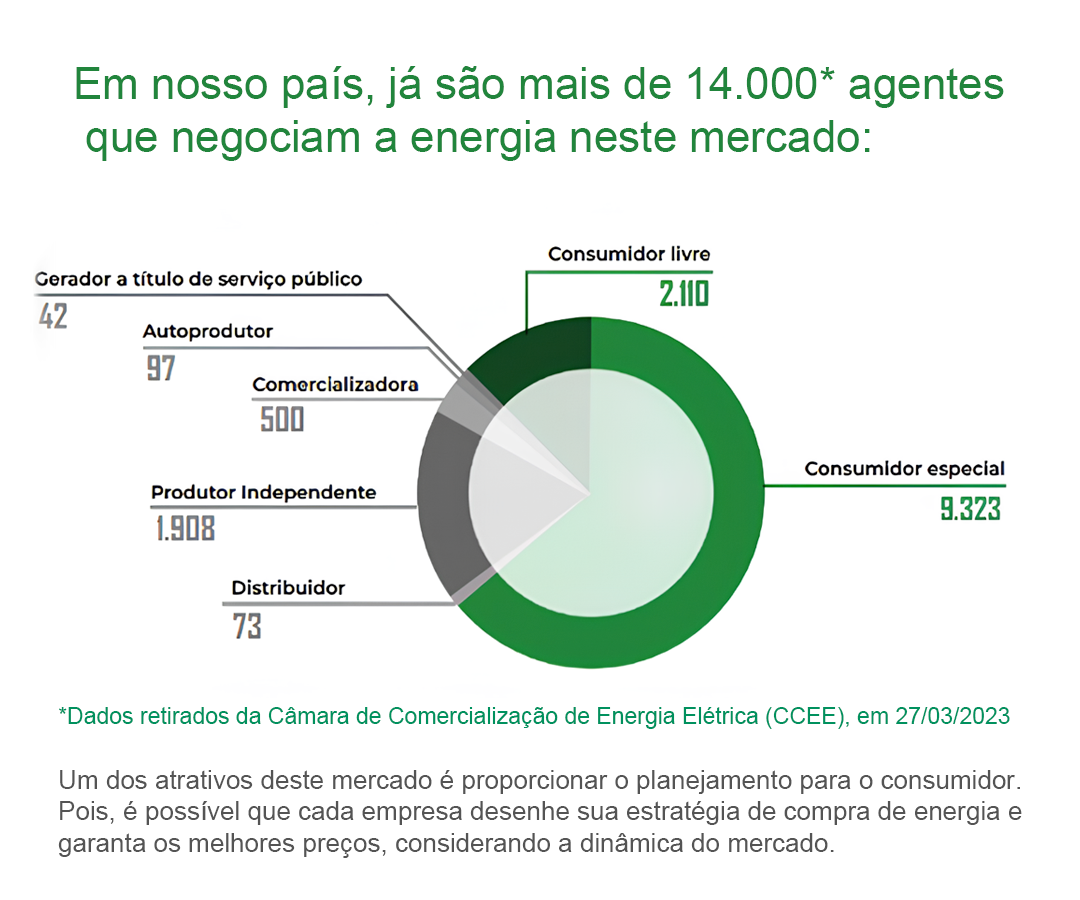 Essa decisão foi estabelecida pela Portaria 50, publicada no Diário Oficial da União em 28 de setembro deste ano. Além disso, a portaria também determina que os consumidores de alta tensão com carga individual inferior a 500 kW sejam representados por um agente varejista junto à Câmara de Comercialização de Energia Elétrica (CCEE). Mais à frente você entenderá os detalhes da atuação da comercializadora varejista.
